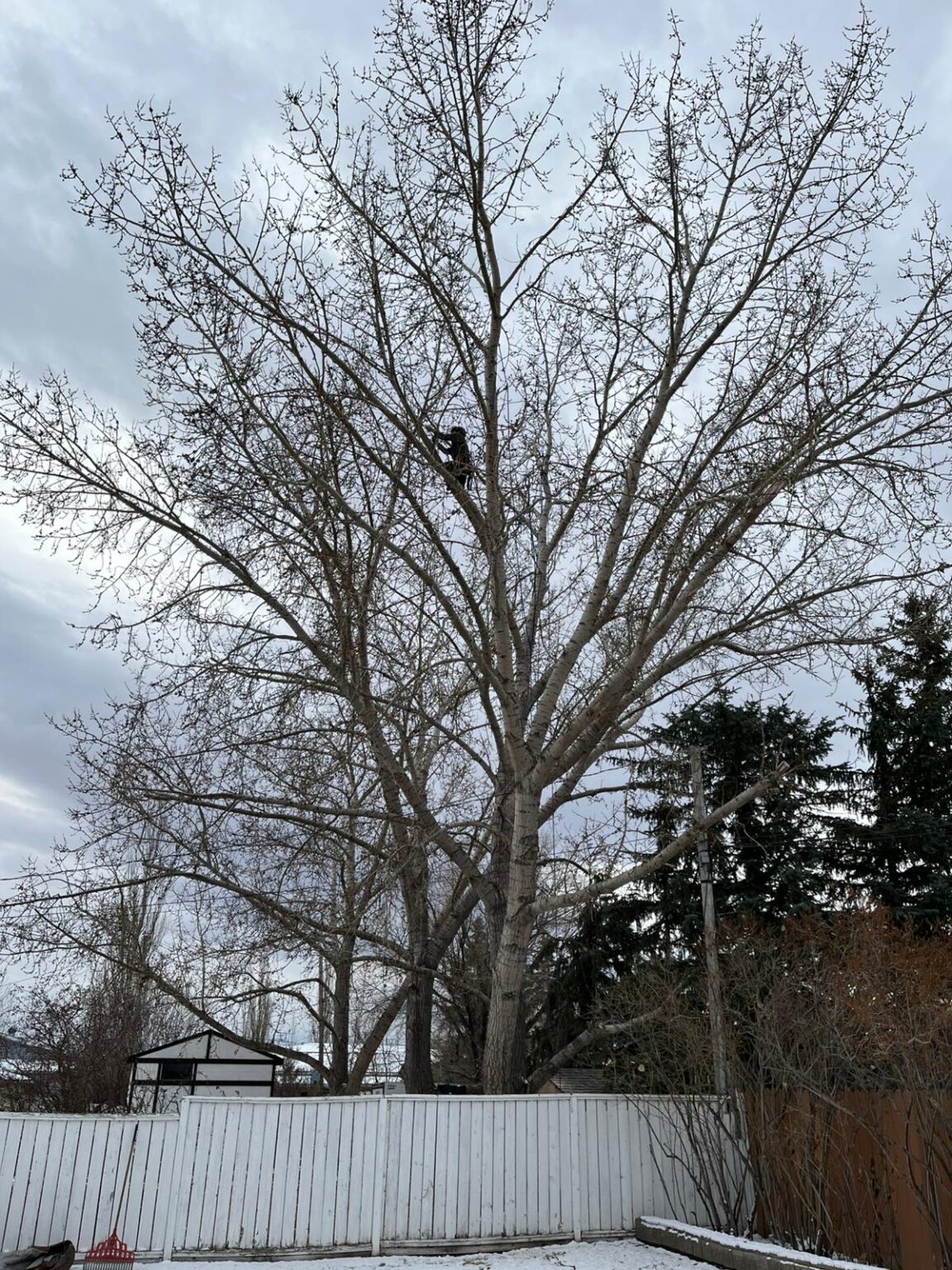 Our team recently completed pruning on three large poplar trees in Langdon. The work focused on removing deadwood and reducing over-extended branches to help lower the risk of storm-related damage.